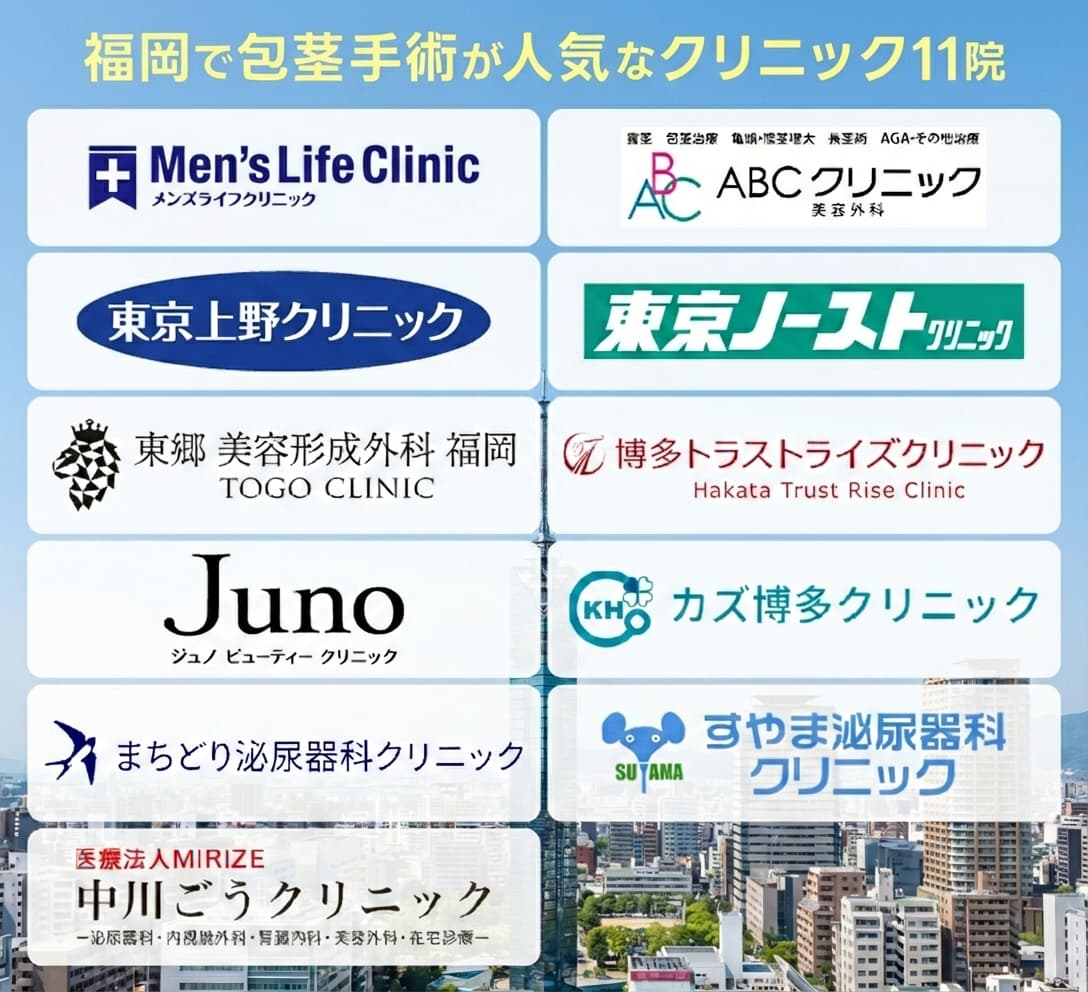 本記事では、福岡でおすすめの包茎クリニック11院を紹介しました。
