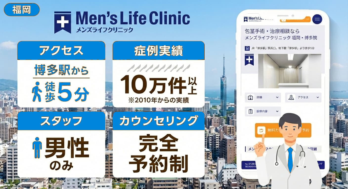 メンズライフクリニック福岡・博多院は、包茎手術の実績豊富な大手メンズクリニックです。