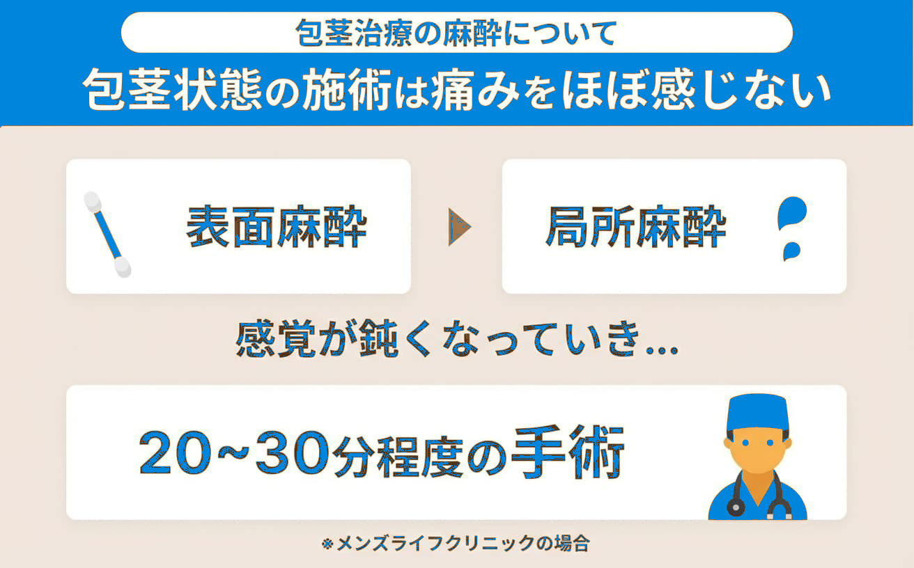 包茎手術では局所麻酔を使うのが一般的で、陰茎の根元から陰茎背神経に麻酔を注入します。
